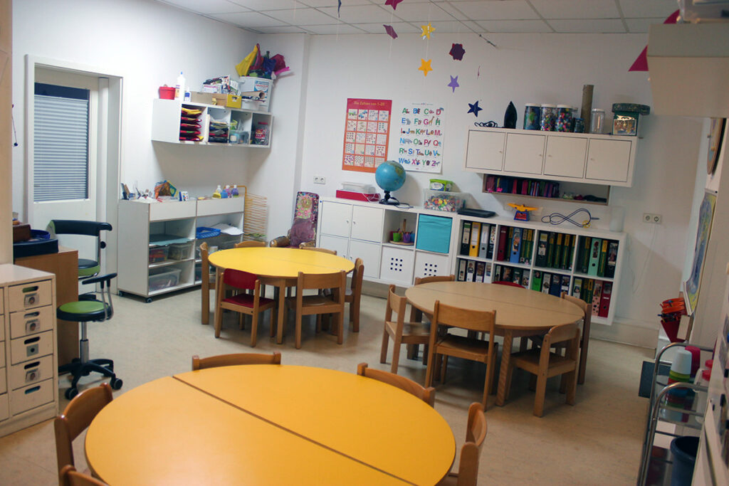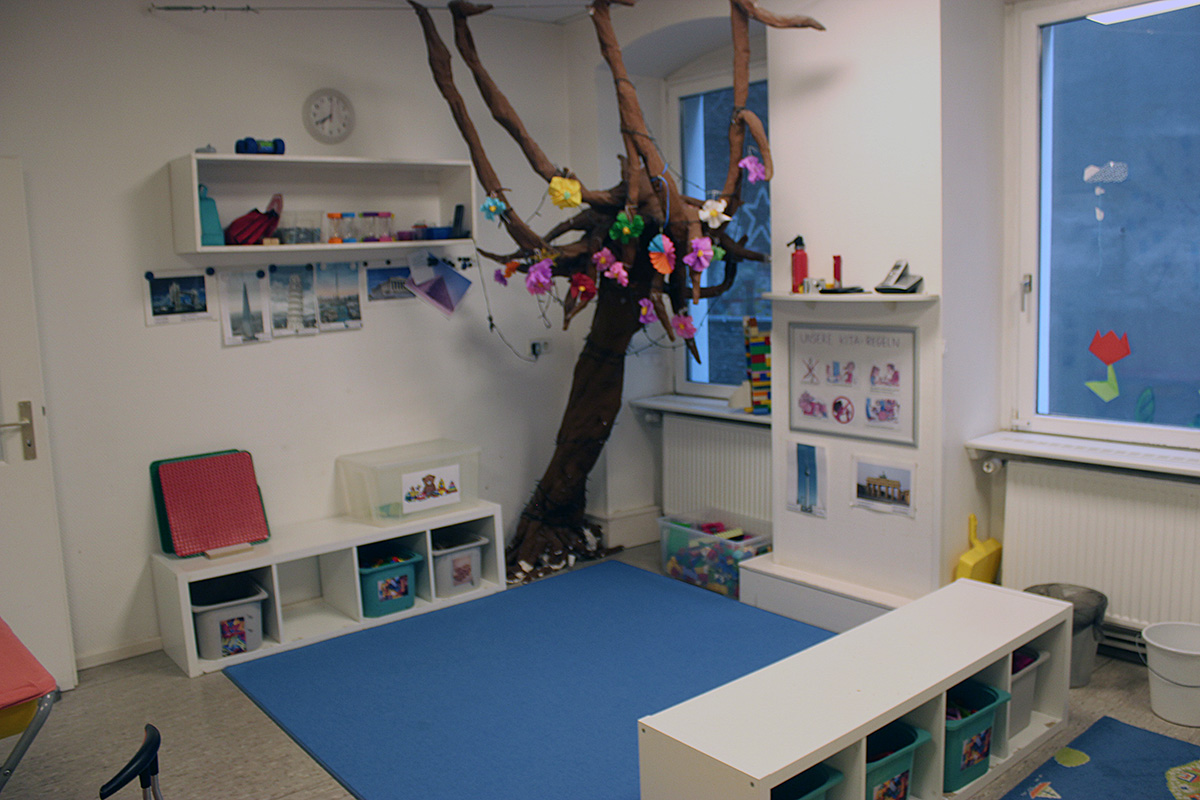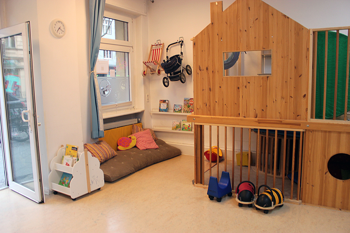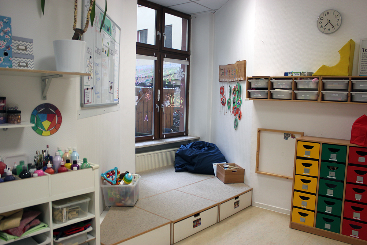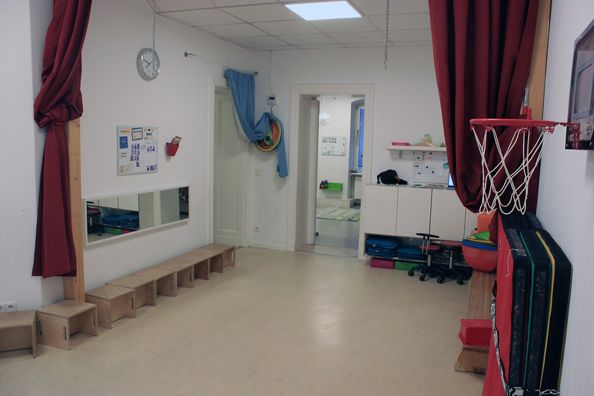 Der Krippenbereich ist räumlich vom Elementarbereich getrennt und umfasst zwei Funktionsräume und einen separaten Waschraum.